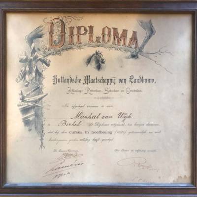 Zijn zoon, Machiel van Wijk weet in 1895 de cursus in hoefbeslag met “buitengewoon goeden “uitslag te behalen. Ook een vakman dus.